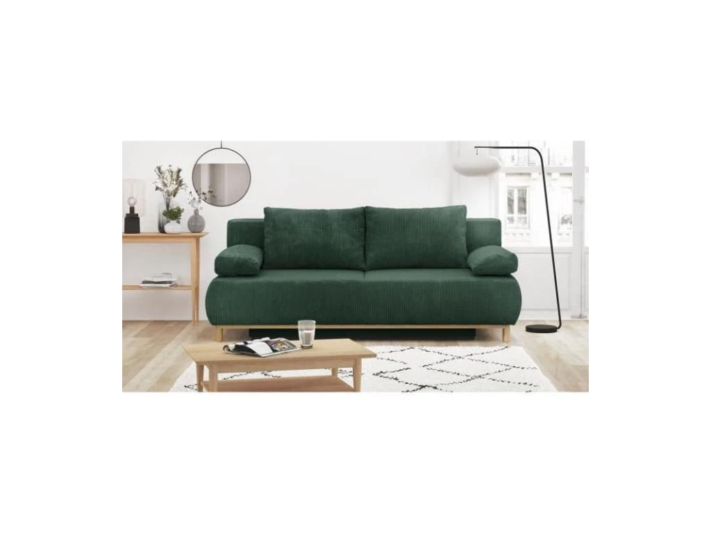 Canapé D’angle – 223 Cm – Avec Fonction Couchage – Velours Hydrophobe – Olive – Pieds Noirs – VOLIO