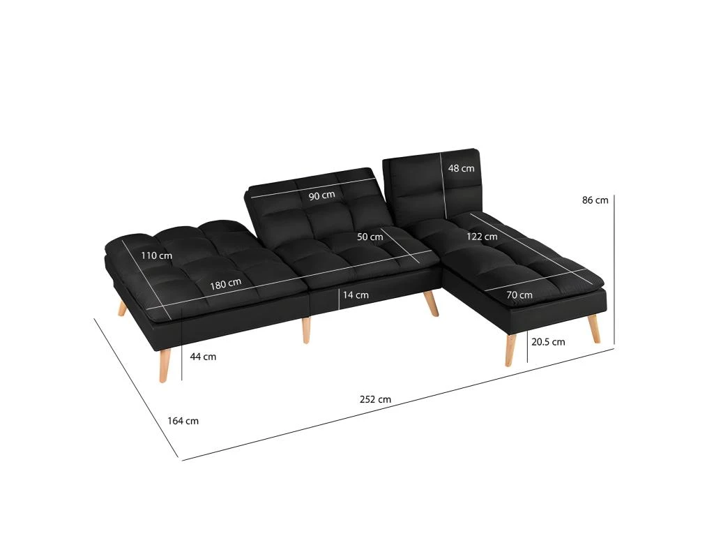 - MESURES : Piètement : H20,5 cm. Dossier : H44 cm. Assise : L250 cm x H44 cm x P50/122 cm. Couchage occasionnel : L180 cm x H44 cm x P180 cm.