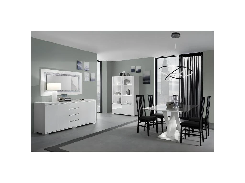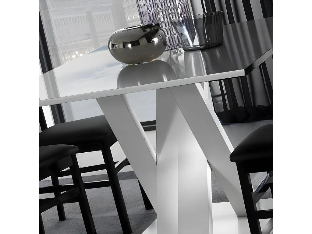 Piétement et plateau en particules ép. 22mm, revêtement mélaminé blanc laqué poli. Chant en ABS verni poli coloris blanc.