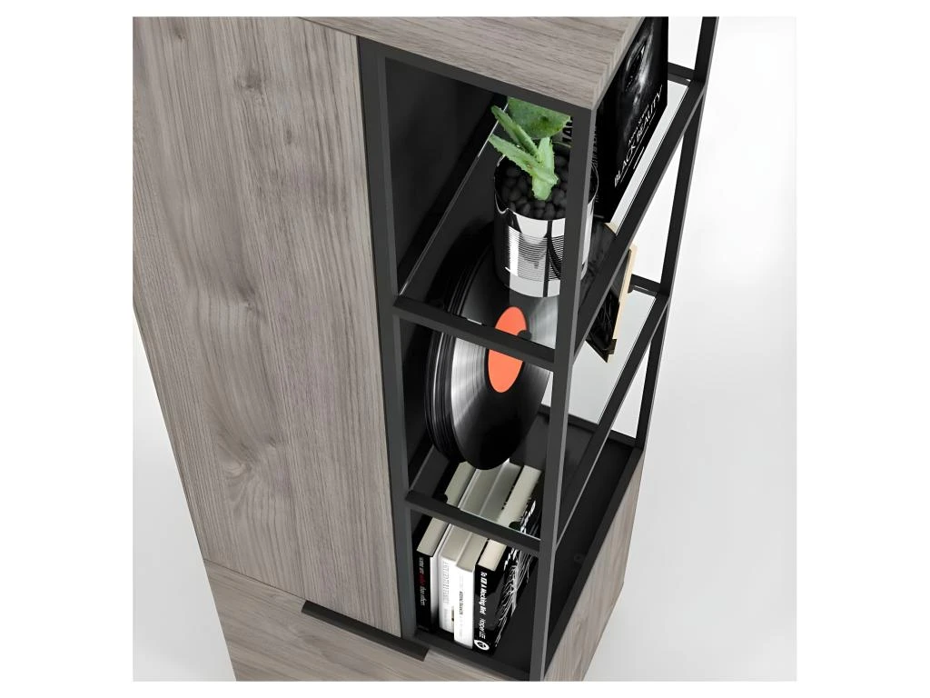 Vous pourrez ranger livres, objets de décoration et divers objets derrière les portes et dans la partie ouverte, ce sont alors plus de nombreux espaces de rangement qui vous sont proposés dans un meuble au look exceptionnel.