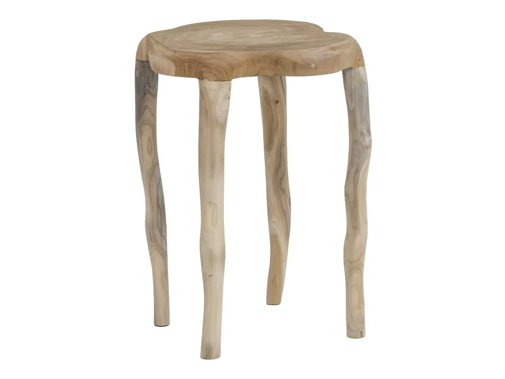 Véritable atout de décoration, cette table d’appoint est réalisée à partir d’un matériau de qualité à savoir le bois de teck. Particulièrement esthétique, il apporte une certaine robustesse au meuble. Il dispose de nuances chaleureuses qui amèneront une belle dose de convivialité dans votre pièce. Cette table d’appoint dispose d’un plateau style tronc et c’est cette caractéristique qui la rend si originale. En effet, d’un modèle à l’autre, les dimensions ainsi que la forme du plateau vont varier. Vous pourrez être certain de disposer d’un modèle unique !