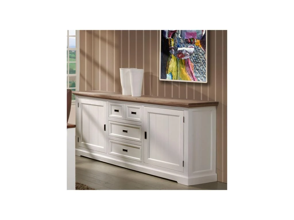 Réalisé en bois massif teinté blanc, ce buffet donnera à votre salle à manger l’ambiance d’une maison de bord de mer. Le bois prend tout son volume avec cette teinte lumineuse.