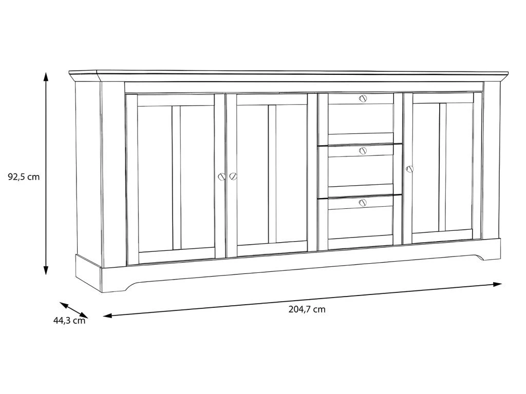 Un élégant buffet au style classique chic qui ajoutera une jolie touche campagnarde à votre intérieur. Dans votre salon ou votre salle à manger, le bahut ANGELE au décor chêne blanchi vous apportera un bel espace de rangement. Ses 3 portes et 3 tiroirs sont équipés du système « soft close » qui vous assure une fermeture en douceur. On aime son plateau marron aux bords biseautés qui apportent de la finesse et du raffinement à l’ensemble. Ses jolis boutons de porte en métal gris ajoutent de l’élégance au bahut. N’hésitez pas à l’associer à d’autres meubles ANGELE, une collection à l’inspiration classique et campagnarde.