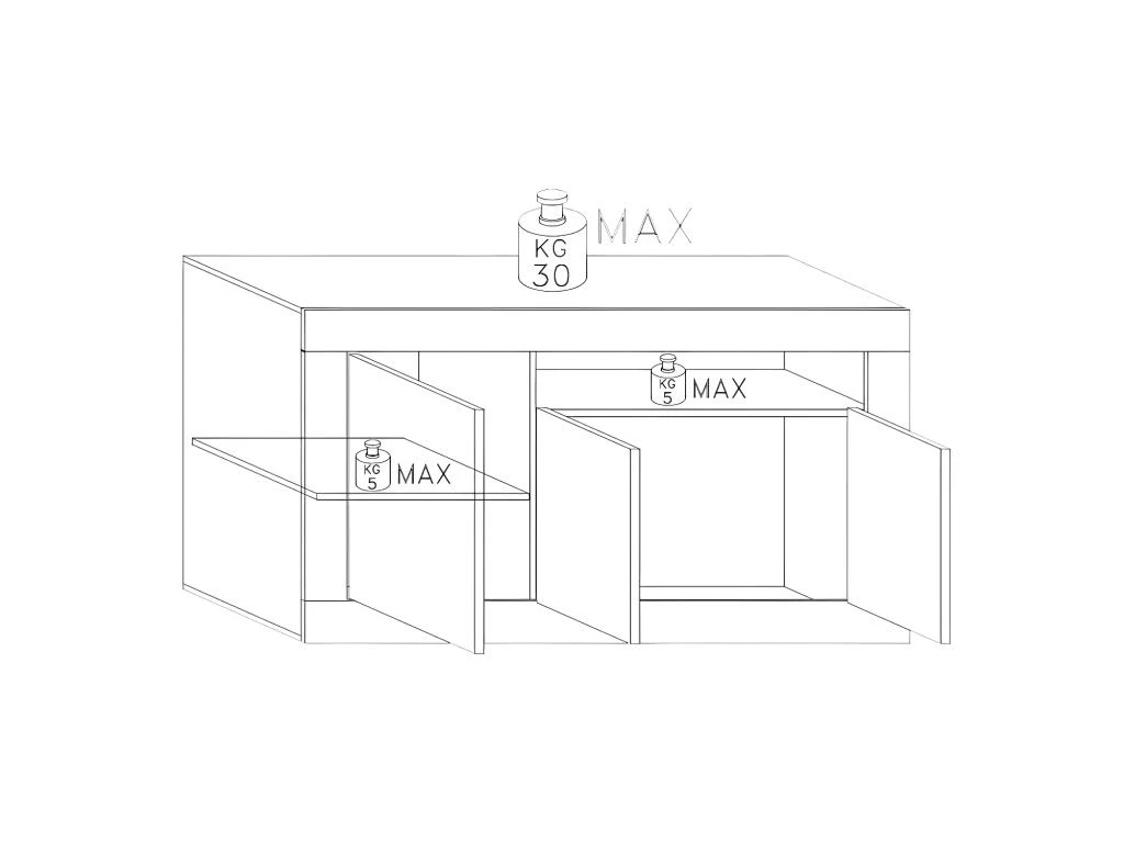 La qualité de réalisation de cette enfilade fabriquée en Italie assure une qualité perçue valorisante, les panneaux de forte épaisseur garantissent une stabilité satisfaisante et la quincaillerie prémium assure un fonctionnement fluide et silencieux.