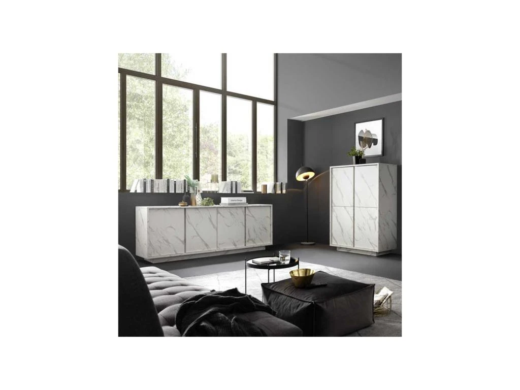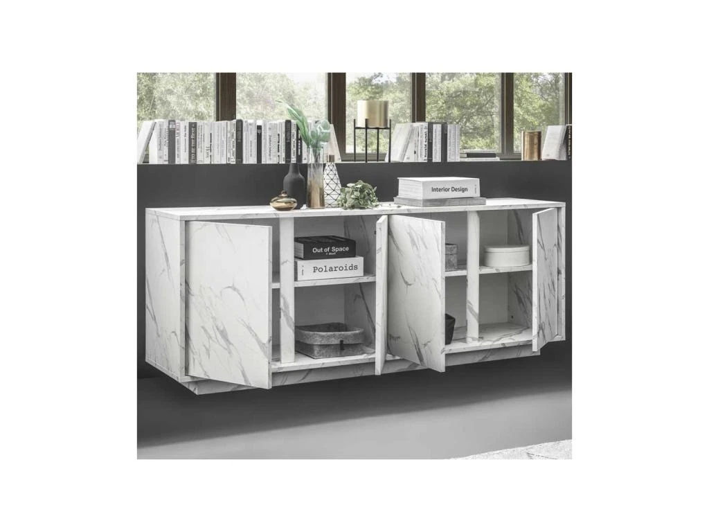 Totalement revêtue d’une mélamine finition Marbre Blanc au rendu très probant, cette très belle enfilade bénéficie d’une grande résistance aux rayures et à l’abrasion pour une durée de vie hors du commun.