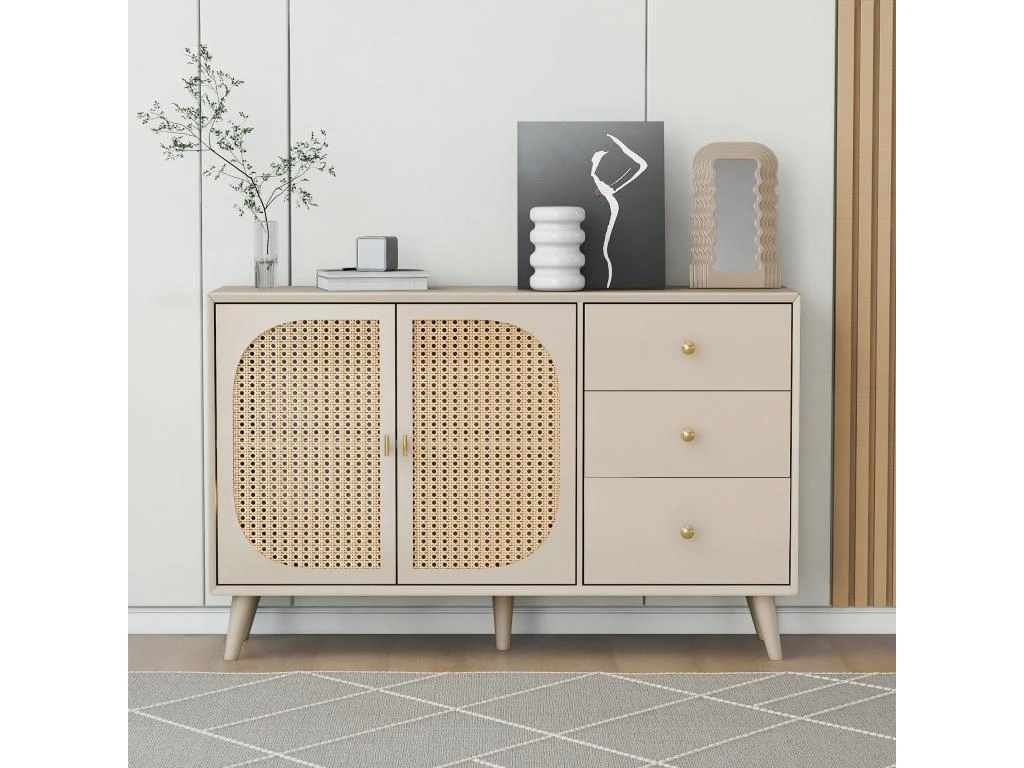 Épissage à 45 degrés : les coins sont épissés à 45 degrés et l’armoire crème est assortie à du rotin PE tissé, ce qui améliore la forme et la conception du produit.