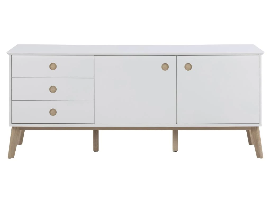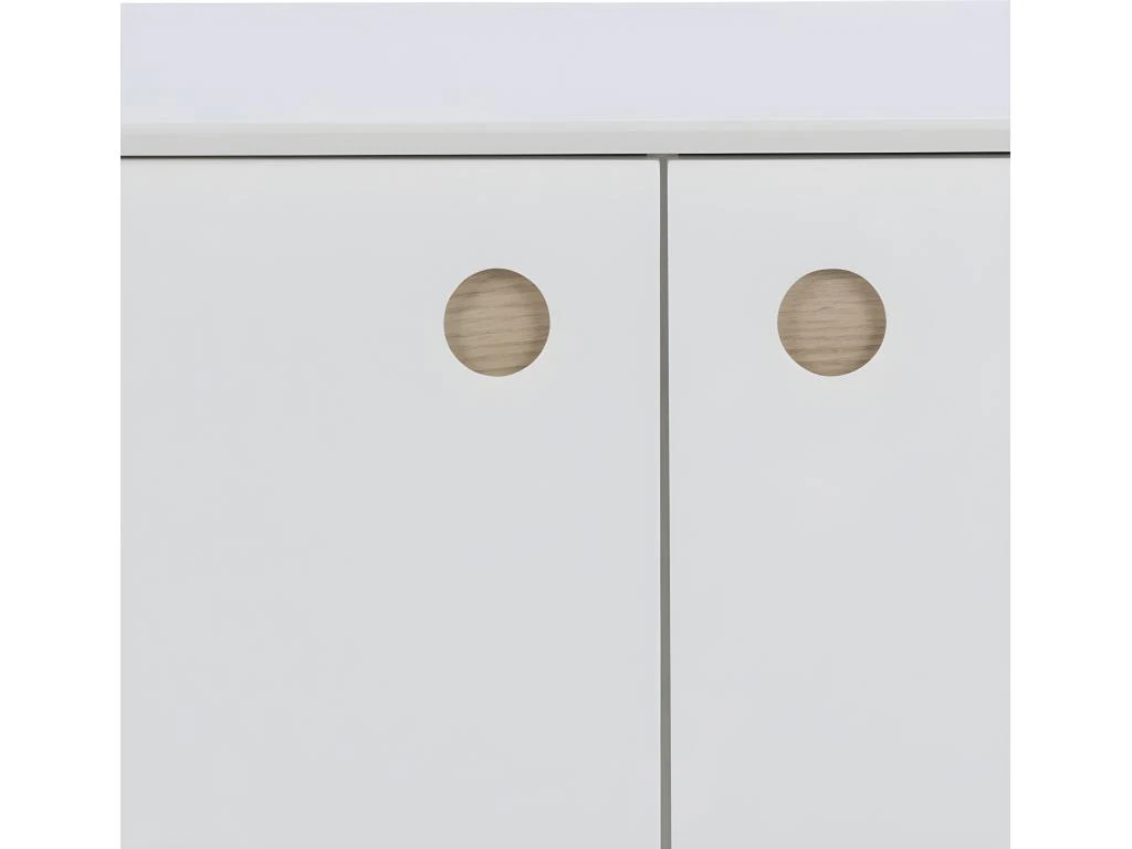 Buffet Haut Avec LED Collection KILES Deux Portes. Coloris Blanc Et Chêne. Porte Vitrée à Droite