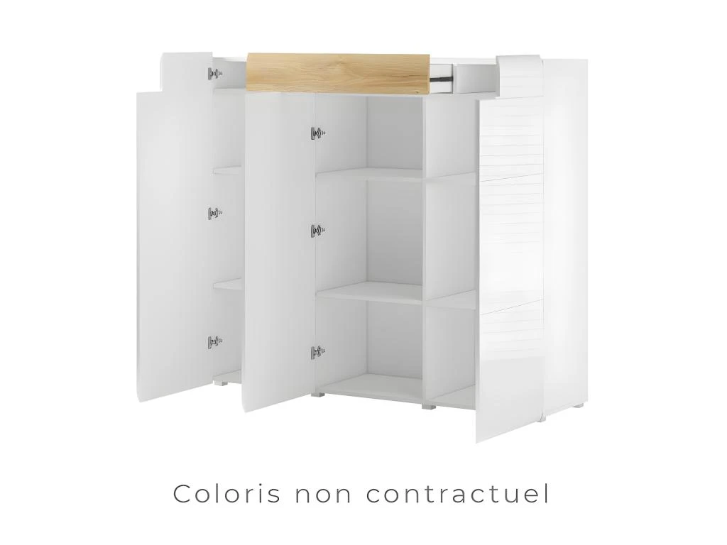 Offrez à votre salon un style unique au top des dernières tendances déco grâce à ce buffet de la gamme OHIO ! Ce buffet est composé de nombreux rangements grâce à ses trois portes et son grand tiroir.