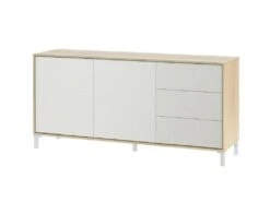 STRUCTURE ET UTILISATION – Meuble de salon pratique et peu encombrant structuré avec trois portes battantes et trois tiroirs, à l’intérieur trois étagères fixes – Les portes n’ont pas de poignées et sont équipées pour améliorer leur design – L’étagère supérieure fait de ce buffet un meuble TV pour ranger vos bibelots préférés – Ce meuble est parfait pour décorer la salle à manger, le salon, le couloir, l’entrée, le couloir ou le bureau en contenant de manière ordonnée vaisselle, verres, nappes, couverts, livres, documents ou objets de décoration.