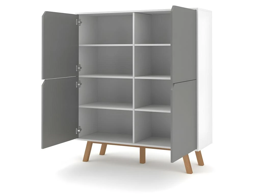– COLORIS : Corps blanc mat et façades gris mat. Pieds en hĂȘtre.
