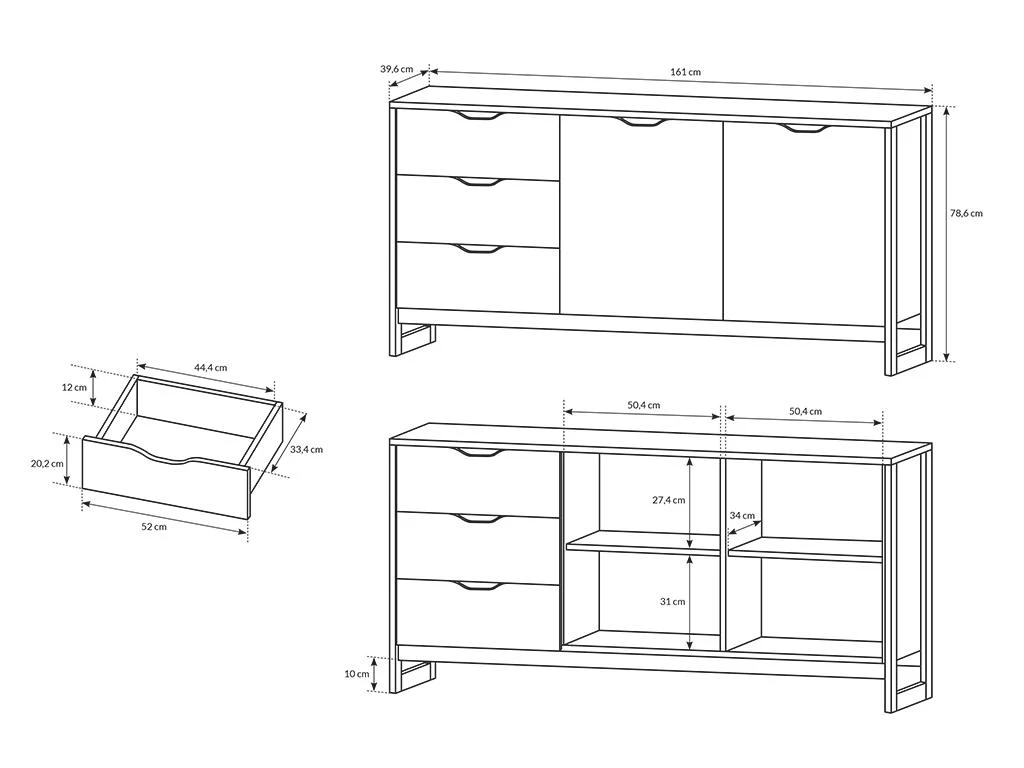Charge maximale supportée par les tiroirs : 3 kg