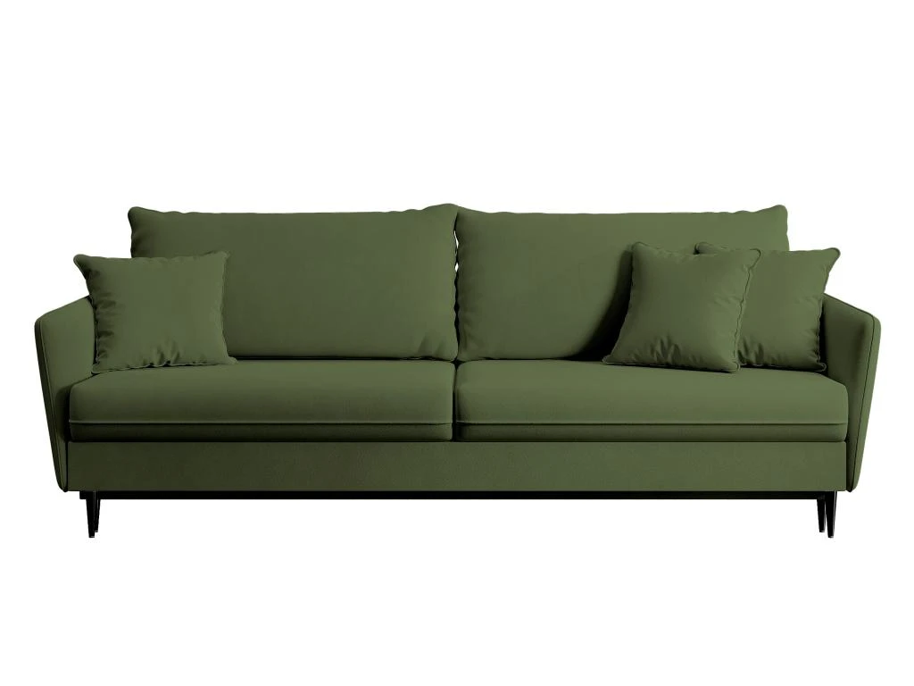 Le canapé Volio est une proposition qui vous ravira par sa forme minimaliste, dans laquelle on peut clairement voir l’inspiration tirée de solutions de design classiques. Les coussins du dossier, hauts et presque rectangulaires, soutiendront votre dos de manière adéquate et le dossier confortable vous permettra de prendre un repos bien mérité. La surface de ce meuble est remplie de mousse et de ressorts ondulés, de sorte qu’elle est suffisamment souple pour être extrêmement agréable à utiliser, mais aussi suffisamment flexible pour ne pas se déformer. Grâce à la fonction de couchage intégrée, basée sur le système pratique de dépliage DL, vous pouvez facilement transformer le meuble en un lit spacieux sur lequel vous pouvez loger vos invités ou organiser une réunion dans un groupe plus important.