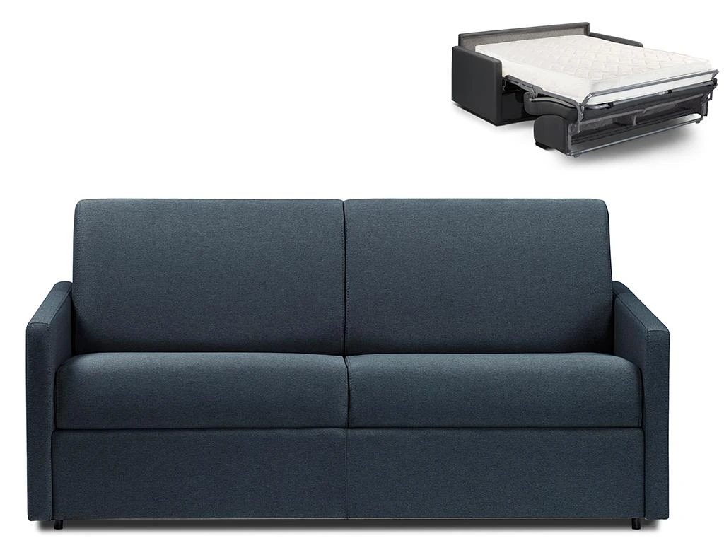 Canapé 3 Places Convertible Express En Tissu CALIFE – Bleu Foncé – Couchage à Lattes Larges 140 Cm – Matelas 18 Cm