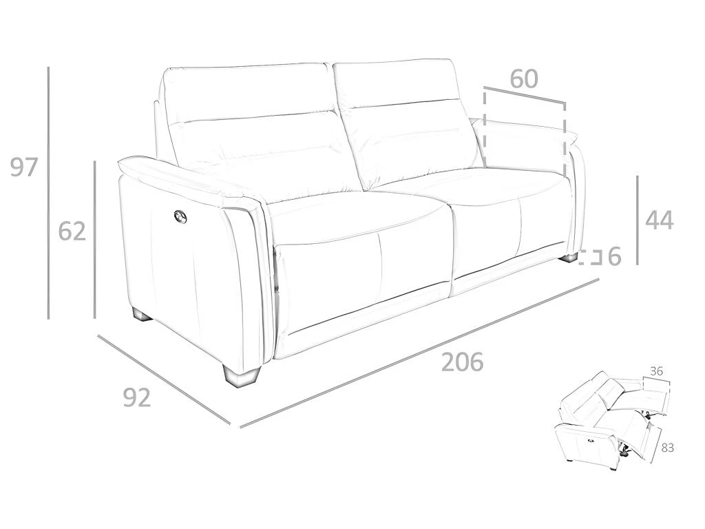- DIMMENSIONS: La taille de ses sièges avec mécanisme relax et son rembourrage en mousse de polyuréthane d’une densité de 25 kg/m3, vous apporteront un maximum de confort, sans négliger la plus haute tendance. CARACTERISTIQUES : Ce canapé permet un confort maximal grâce à ses sièges inclinables avec mécanisme relax. En outre, vous pouvez compléter votre pièce avec le canapé 3 places et la chaise longue de la même collection.