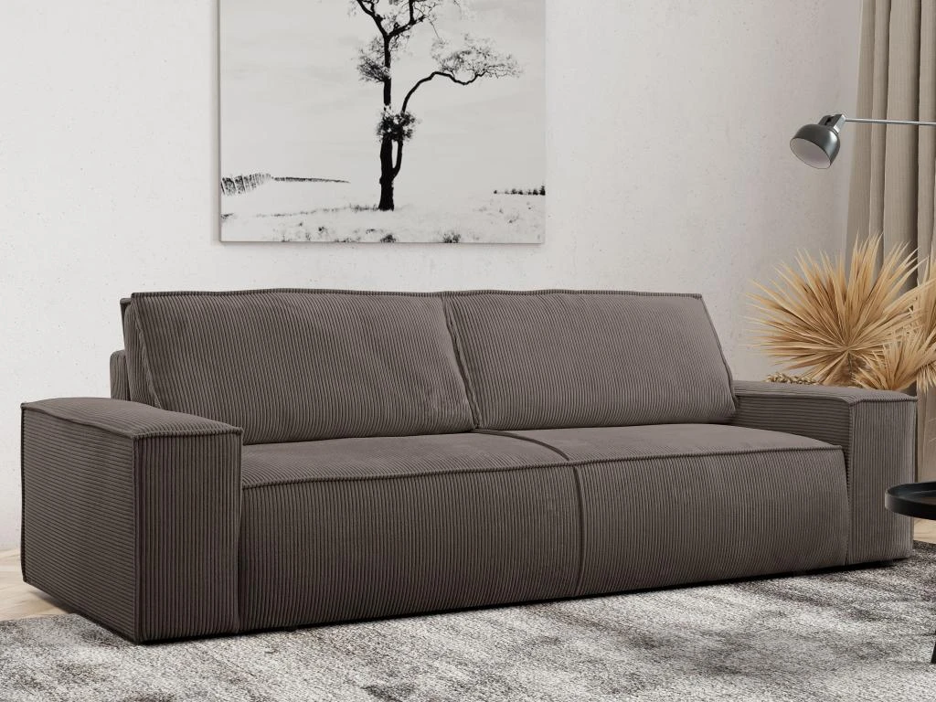 Le canapé convertible ou le fauteuil AMELIA en velours côtelé sont les pièces qui viendront sublimer votre salon grâce à sa matière douce et élégante. Le canapé convertible est aussi très fonctionnel : convertible et pratique, vous pourrez le transformer en un couchage supplémentaire très rapidement et aussi ranger vos affaires dans le coffre sous l’assise.