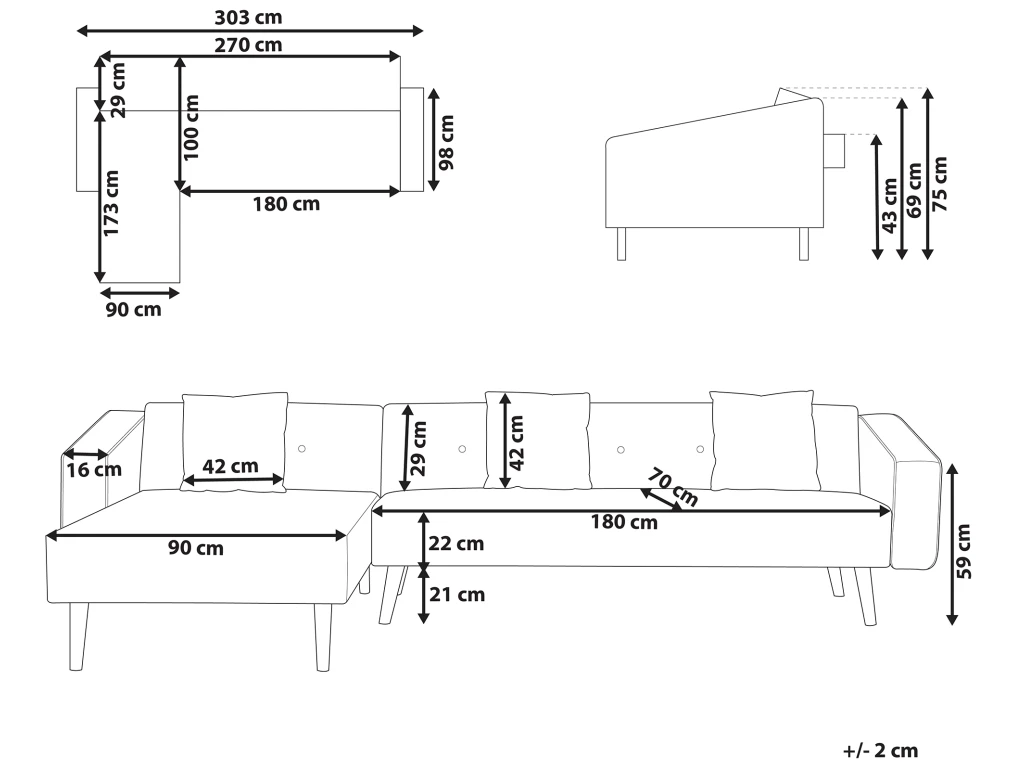 L`offre inclue: 1 x Canapé d’angle, 3 x Oreiller