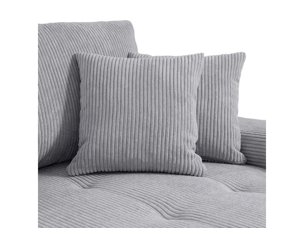 Matériaux : Revêtement : Tissu velours côtelé 100% Polyester – Rembourrage de l’assise : mousse de polyuréthane T28 épaisseur 11 cm et ressorts ondulés – Rembourrage du dossier : mousse T25 épaisseur 8 cm – Piétement en métal chromé et ABS noir