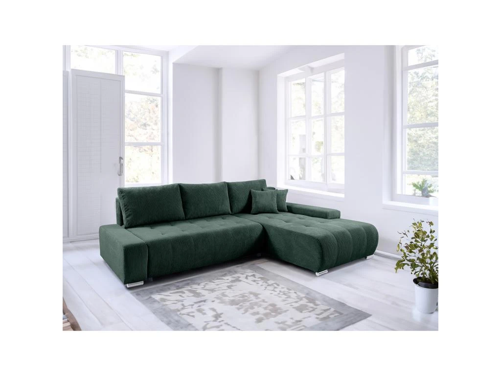 Caractéristiques : Canapé méridienne 4 places – Méridienne côté droite – Convertible en lit d’appoint – Ouverture facile : avance de l’assise soutenu par le système de dépliage automatique DL et bascule du dossier – Mécanisme avec ralentisseur – Coffre de rangement : poids maximum 8kg – 3 coussins de dossier – 2 Coussins décoratifs – Coussins dossier et décoratifs déhoussables – Existe en 6 coloris