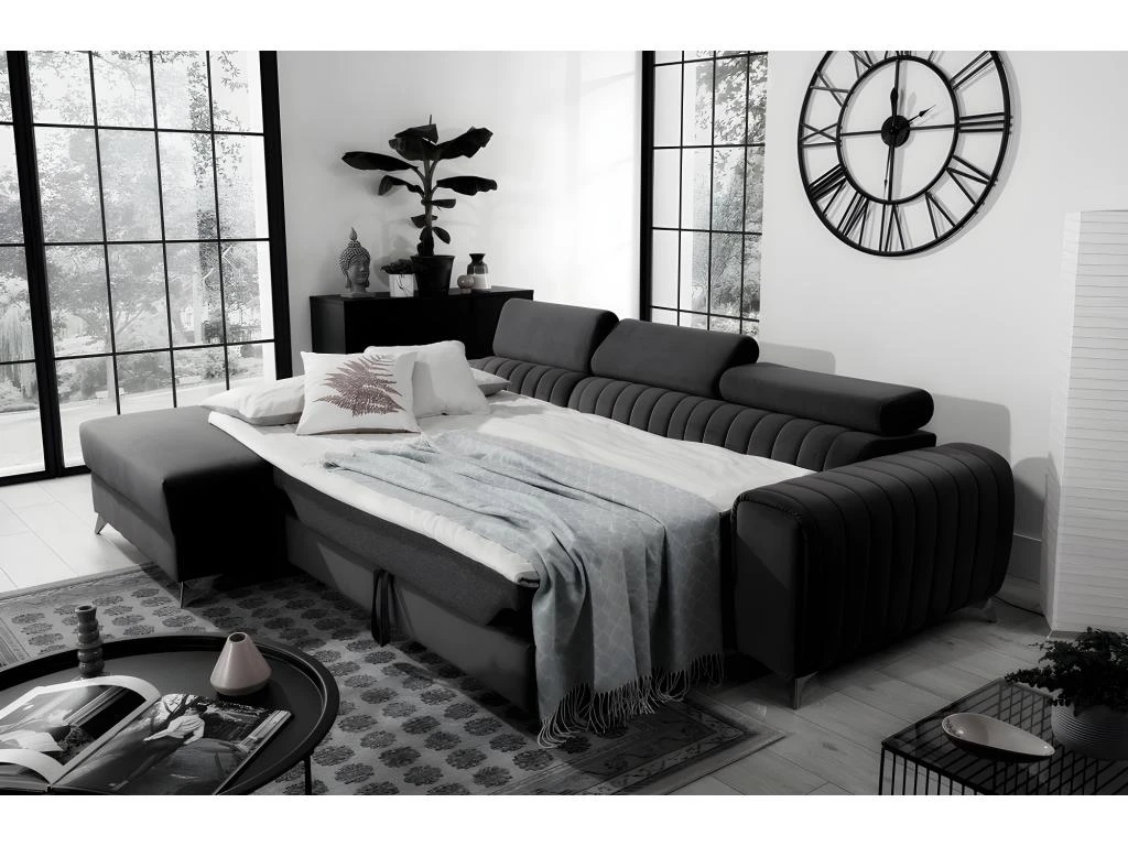 Ce très joli canapé s’intégrera parfaitement dans n’importe quel type d’intérieur. Accoudoirs et dossier décoratifs. Avec un dossier ergonomique et des appui-tête réglables en multipostions. Equipé d’une fonction couchage à ouverture très facile et dispose d’un coffre de rangement très pratique.