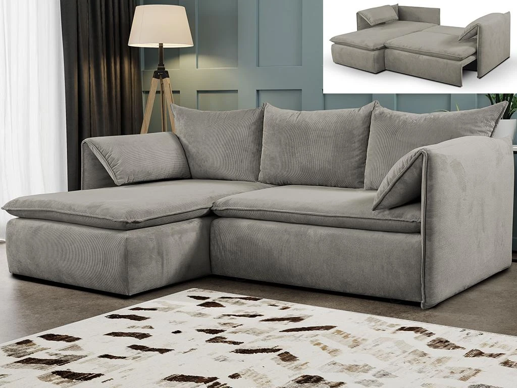 Idéal pour les petits espaces, le canapé d’angle convertible TEODORA deviendra rapidement une pièce maîtresse de votre salon grâce à la douceur de son velours côtelé, son look tendance souligné par ses accoudoirs fins relevables et à son aspect pratique. Vous allez adorer vous y prélasser ! Convertible et doté d’un coffre de rangement sous l’assise, ce modèle sera très utile au quotidien pour ranger draps, oreillers ou couettes.