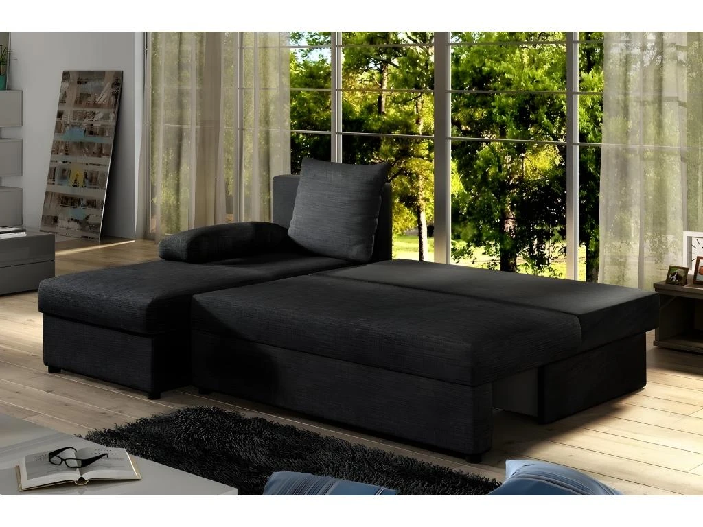 Ce canapé d’angle est de taille compacte et facile à installer dans les grands ou les petits intérieurs. Avec ses mesures de 206x146x90 cm, il offre un grand espace de détente. Grâce à sa fonction canapé-lit, il sera très pratique et rapidement ouvert. Son espace de couchage sera un lit confortable de 120×206 cm. Vous disposez d’un spacieux espace de rangement très pratique. Le système d’ouverture du couchage est simple et intuitif à utiliser, il suffit de tirer la partie inférieure et de déplier le dossier sur le dessus, en quelques secondes vous disposerez d’un lit.