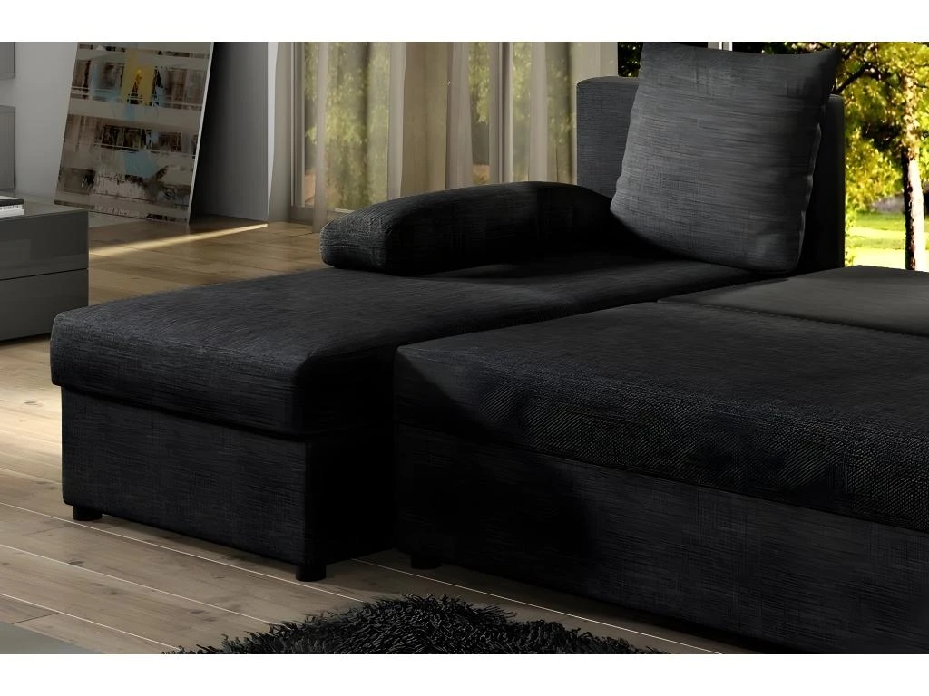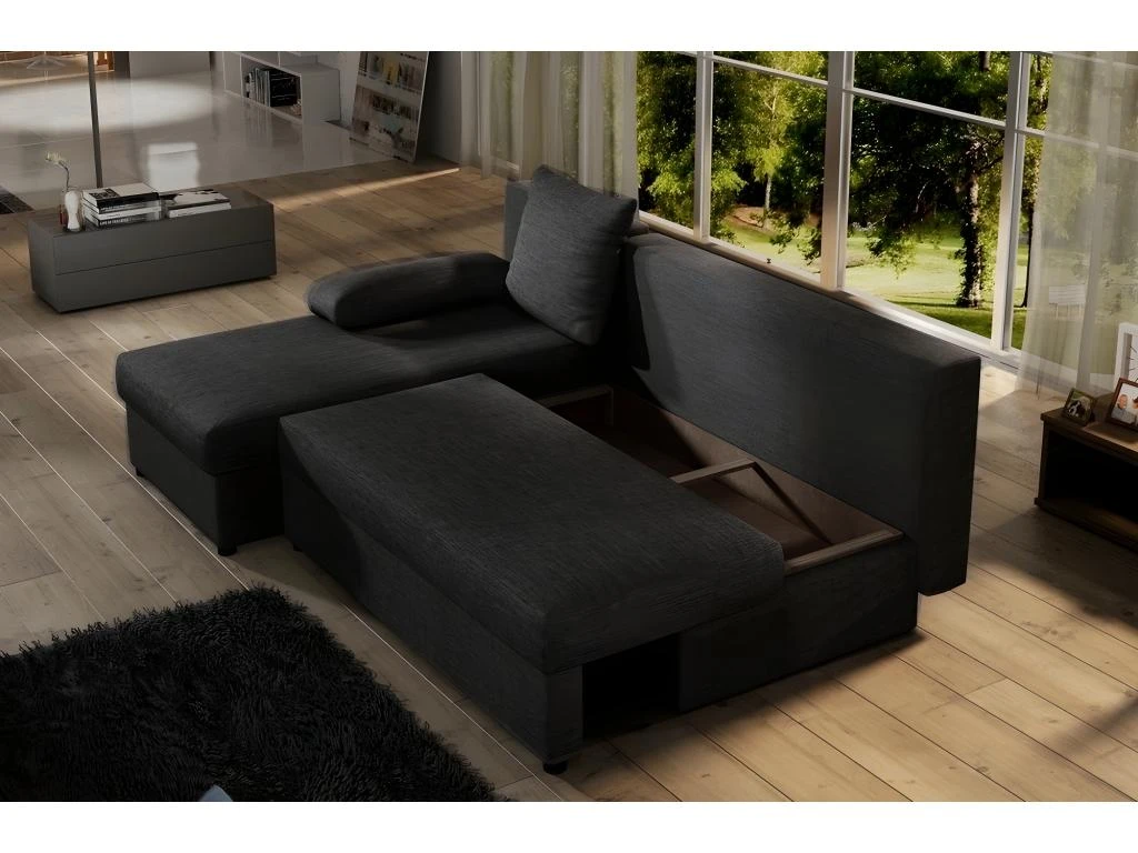 Très joli canapé d’angle convertible en tissu de qualité – GILO – Avec son espace de couchage et son espace de rangement. Très bon confort. Tissu de qualité. Très belle qualité de fabrication européenne.