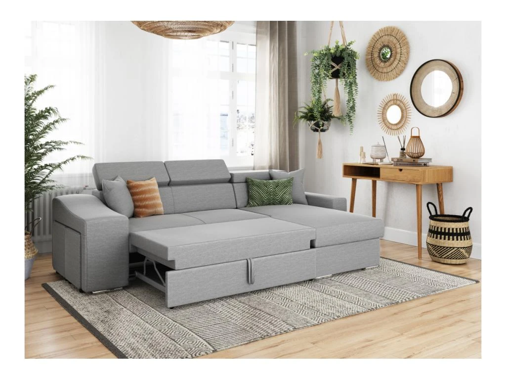Canapé D’Angle ELONA Convertible En Tissu Gris Clair Avec Poufs De Rangement à Gauche