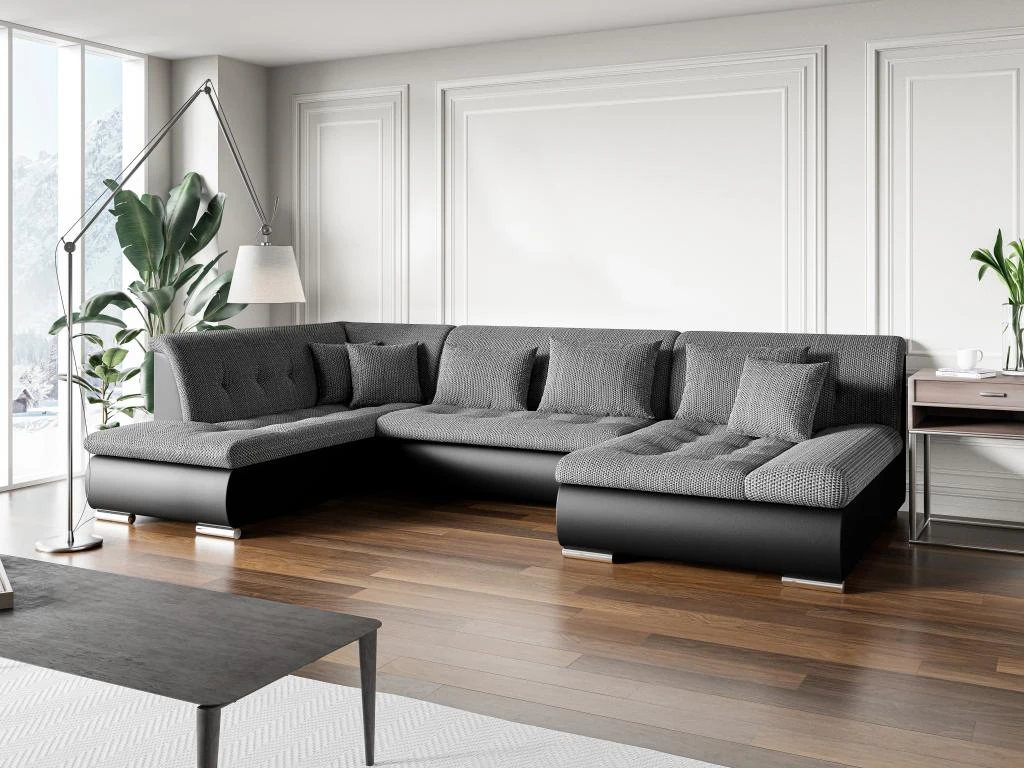 Vous désirez un canapé au style contemporain ? Succombez au charme du canapé en tissu texturé et simili SONDRIO ! Son angle panoramique vous permettra de profiter de moments conviviaux tandis que son mécanisme convertible vous offrira un couchage en quelques secondes. Son revêtement en tissu et simili gris et noir apporte une touche d’originalité au canapé tandis que ses pieds en métal lui confèrent une finition moderne.