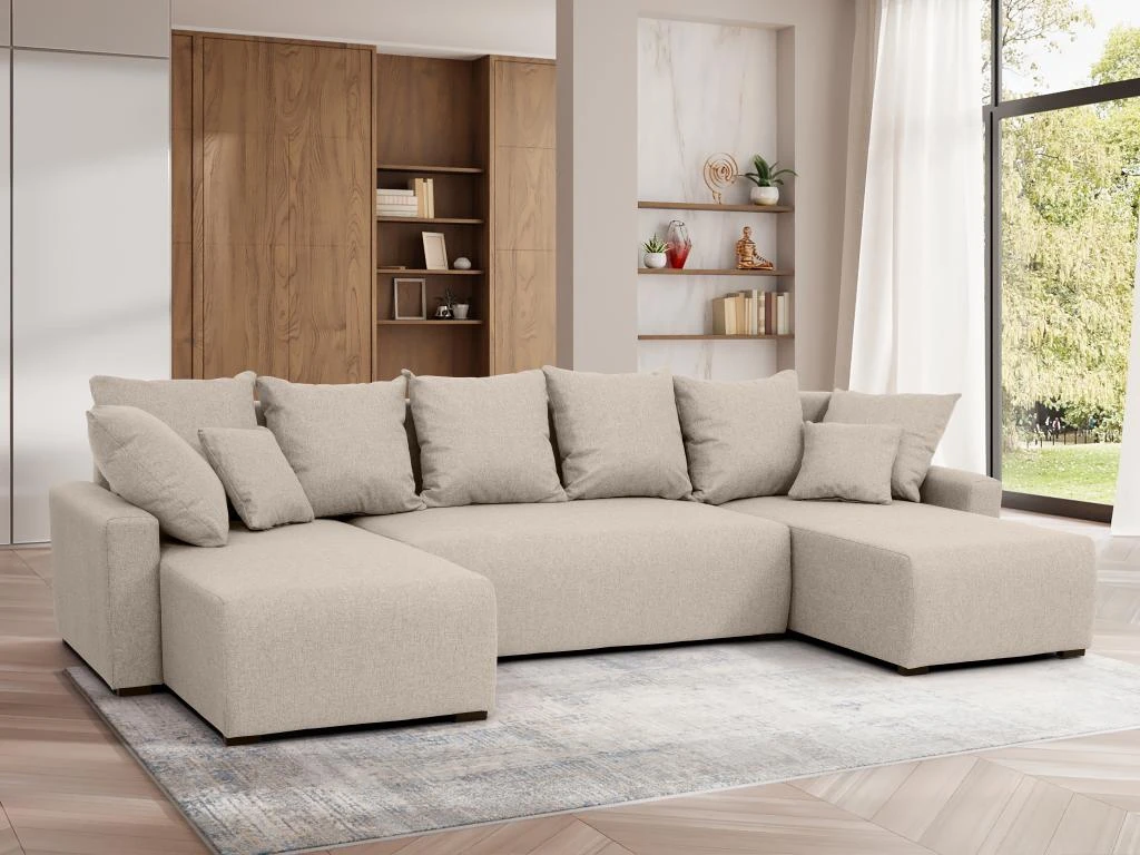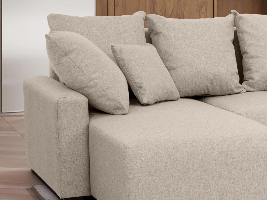 Vous convoitez un canapé qui épousera à la perfection les angles de votre salon ? Laissez vous séduire par les dimensions généreuses du canapé d’angle panoramique LADAZIA. Celui-ci offre un espace et un confort dont vous ne pourrez vous lasser. Son option convertible vous fera tomber dans les bras de Morphée !