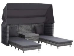 TEIJO Banquette Convertible 3 Places Avec Coffre De Rangement – Tissu Noir – L 190 X P 84 X H 92 Cm