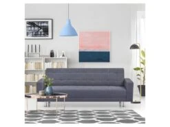 TEIJO Banquette Convertible 3 Places Avec Coffre De Rangement – Tissu Bleu – L 190 X P 84 X H 92 Cm
