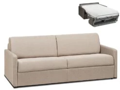 Canapé 4 Places Convertible Express En Tissu CALIFE – Crème – Couchage 160 Cm – Matelas 22 Cm