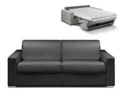 Canapé 4 Places Convertible Express En Simili CALIFE – Gris – Couchage 160 Cm – Matelas 14 Cm