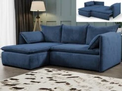 Canapé D’angle Convertible En Velours Côtelé Bleu Marine TEODORA De PASCAL MORABITO – Angle Gauche