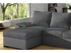 Canapé D’angle Convertible En Tissu Luxe, Rangement – Gris, Angle Gauche (vu De Face), ROXANE