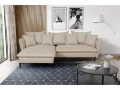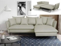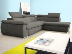 Canapé D’angle Convertible En Tissu Avec Coffre De Rangement FABIEN – Gris Clair- Angle Gauche