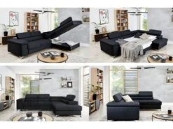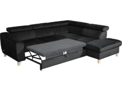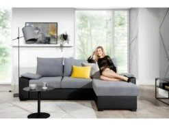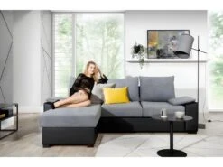 Canapé D’angle Convertible « Gregory » – 268 X 99/178 X 85 Cm – 4 Places – Gris/Noir – Angle Gauche