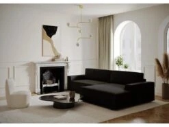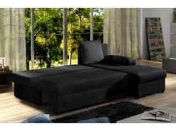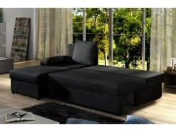 Canapé D’angle Convertible – GILO – En Tissu Luxe 3/4 Places, Noir, Angle Gauche (vu De Face)