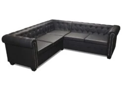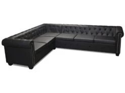 Canapé D’angle Convertible – ERNEST – En Tissu Luxe 5 Places, Noir, Angle Gauche (vu De Face)