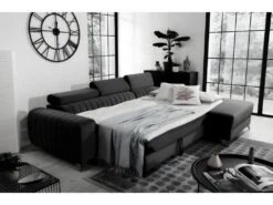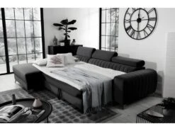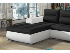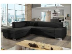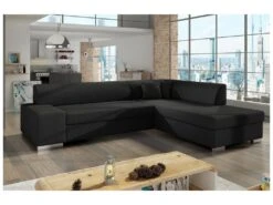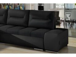 Canapé D’angle Convertible En Tissu Luxe, Rangement – Noir, Angle Gauche (vu De Face), ROXANE