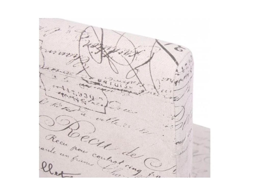 Confortable et robuste recouverte de tissu avec lettrage piètement bois coloris foncés.