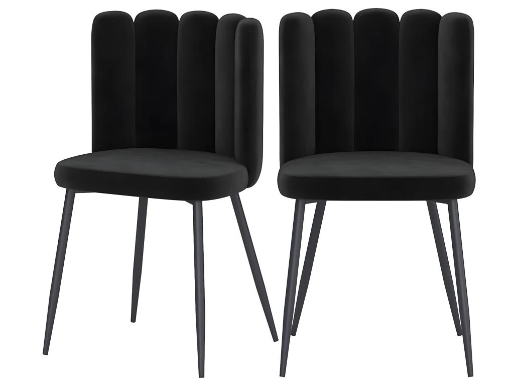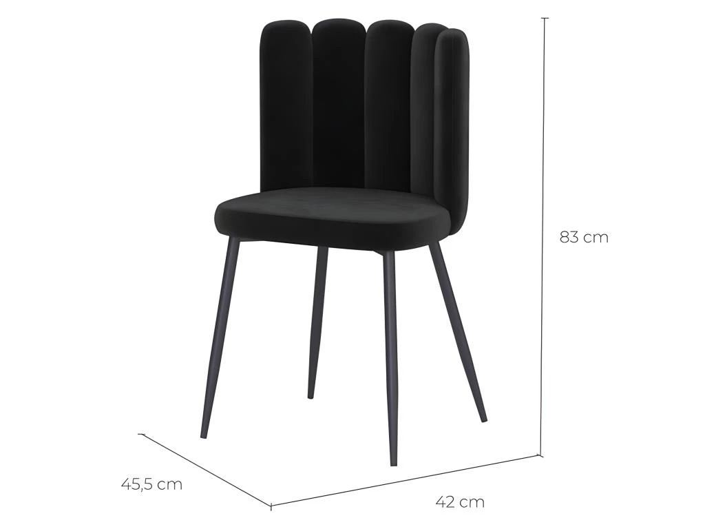 Grâce à ses dimensions harmonieuses L 45,5 x P 42 x H 83 cm, notre chaise Rosy en velours noir (lot de 2) s’imposera comme un must. Vous serez comblé par son assise confortable 47 x 42 cm et la sensualité de son revêtement au toucher incomparable.