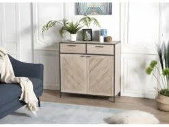 Buffet 2 portes 2 tiroirs bois Sapin et métal. Dimensions : 90 x 40 x 90 cm. Article en Sapin, MDF et Métal. Tout l’esprit Haussmannien est réuni dans cette superbe collection en bois et métal qui apportera inévitablement une certaine élégance à votre intérieur.