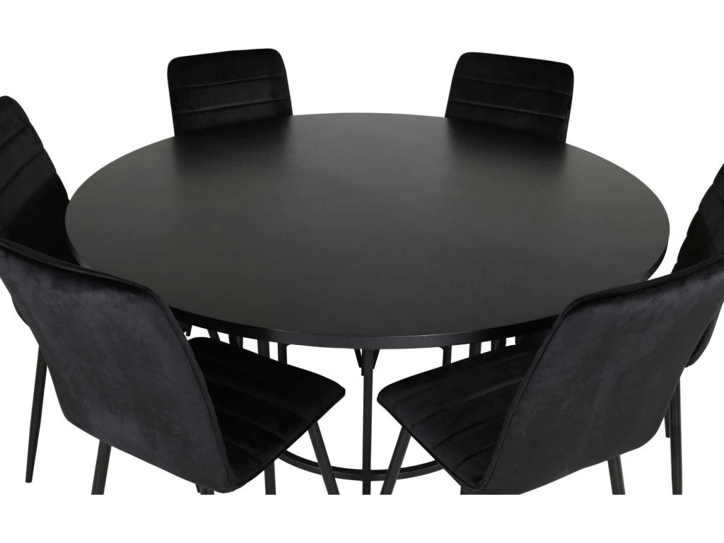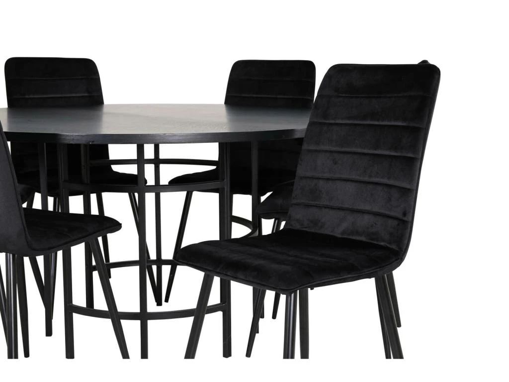 Skate Ensemble Table, Table Noir Et 4 Berit Chaises Velours Beige.