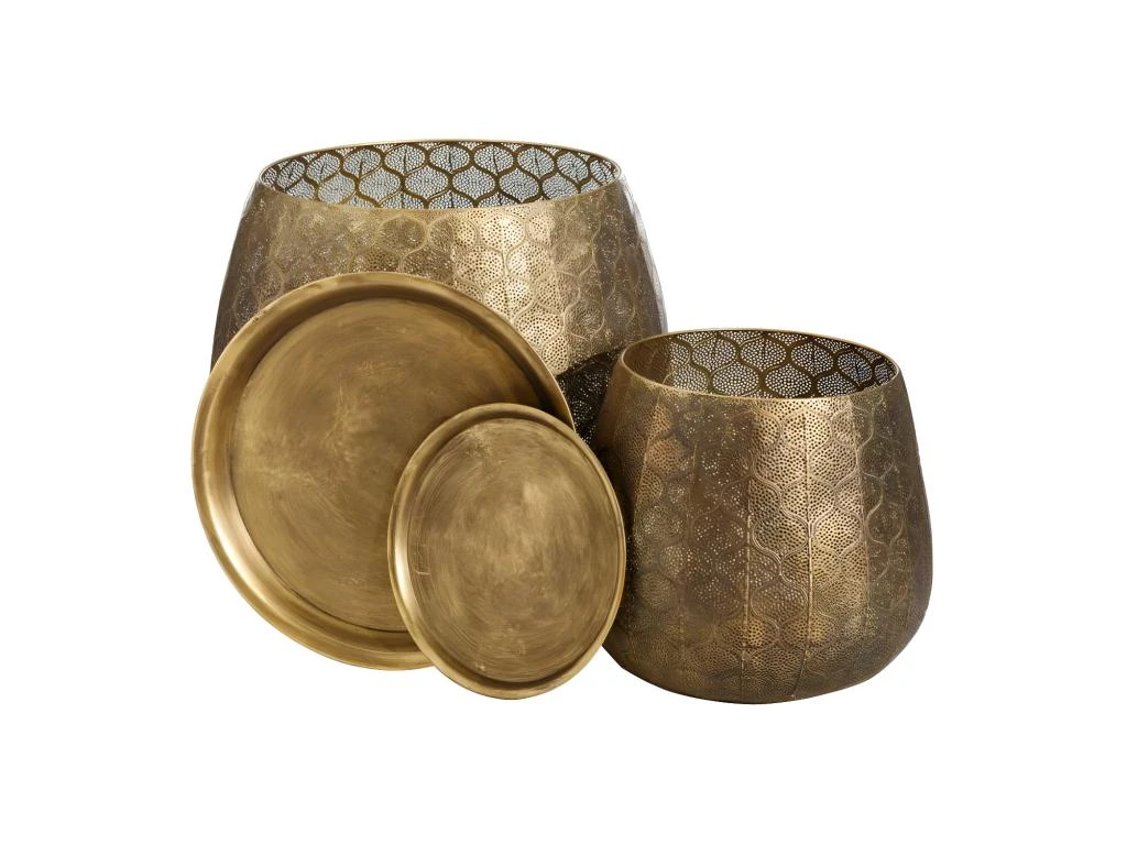 Finalisez la déco de votre salon ambiance Bout du monde avec ce lot de 2 tables d’appoint rondes proposant une très belle finition Or vieilli.
