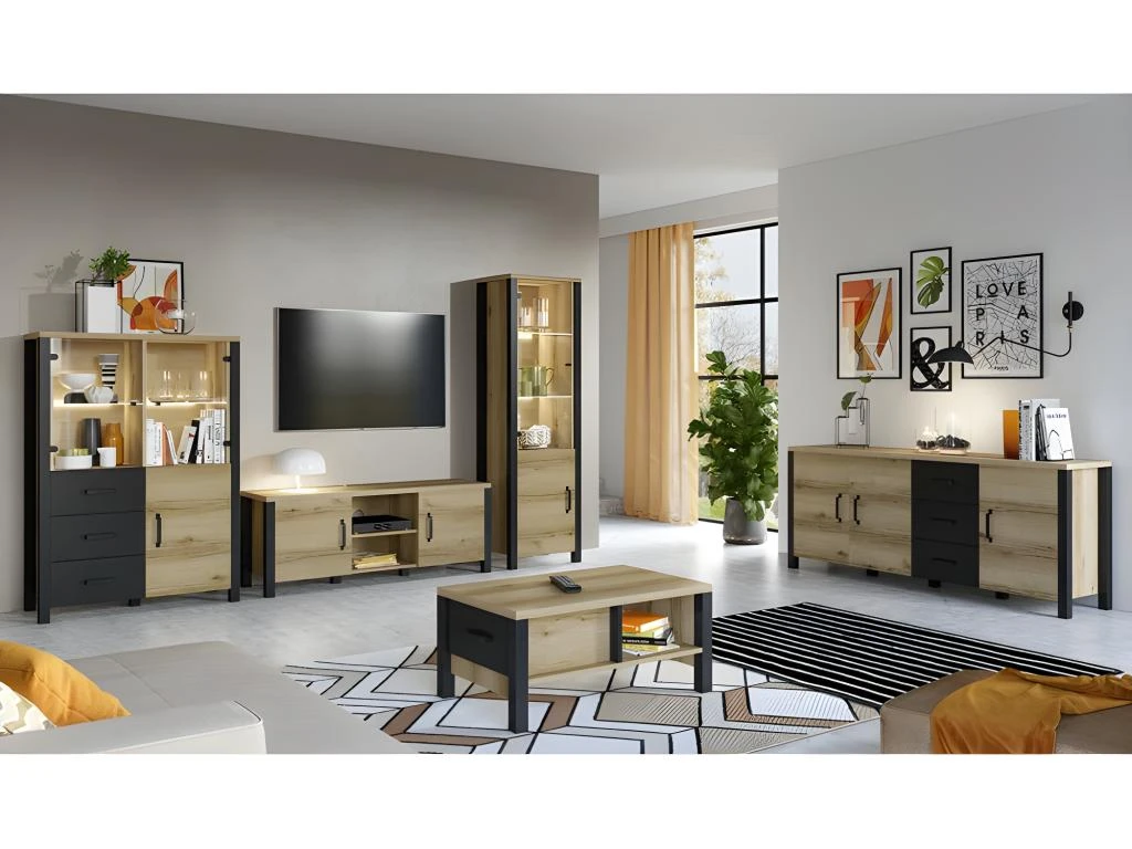 – COMPOSITION : une vitrine haute, un meuble TV, un buffet haut, un buffet bas et une table basse