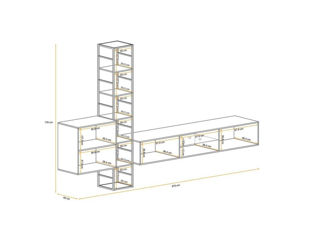 - Dimensions : L. 270 x l. 40 x H. 176 cm (selon positionnement souhaité)