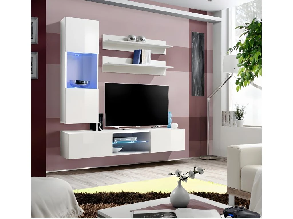 Cet ensemble offrira à votre salon un style ultra chic, au top des dernières tendances déco. Le meuble TV FLY S est en effet équipé d’éléments amovibles qui vous permettront de structurer vous même votre composition murale. Présence également du système « push to open » intégré aux portes.