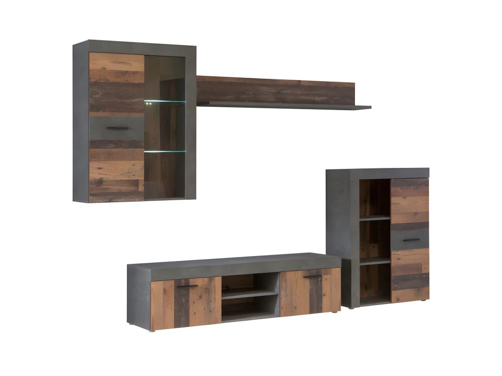 Apportez un style rustique à votre intérieur tout en habillant le mur de votre salon grâce à cet ensemble de meubles TV. Une parfaite harmonie entre le bois et le béton, apportant une atmosphère chaleureuse et accueillante. Pratique, cet ensemble de meubles TV et paroi murale vous offrent de multiples rangements possibles à l’abri des regards. Exposez de la décoration sur l’étagère supportant 5 kg et sur les étagères vitrées ou dans les compartiments ouverts. Installez votre télévision au centre de cette paroi et profitez d’agréables moments avec vos proches !