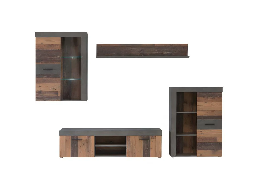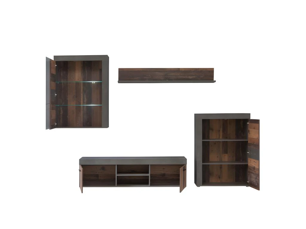 - DÉTAILS : 1 meuble TV 43,3 x 159,6 x 41 cm. 1 commode 110,5 x 80 x 33,8 cm. 1 étagère 23 x 148,8 x 23 cm. 1 armoire murale 109 x 80 x 32,5 cm. Éclairage non inclus.